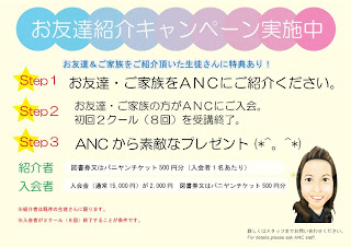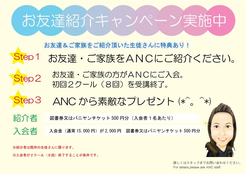 お友達またはご家族の方をANCにご紹介いただくと、素敵なプレゼントがあります!